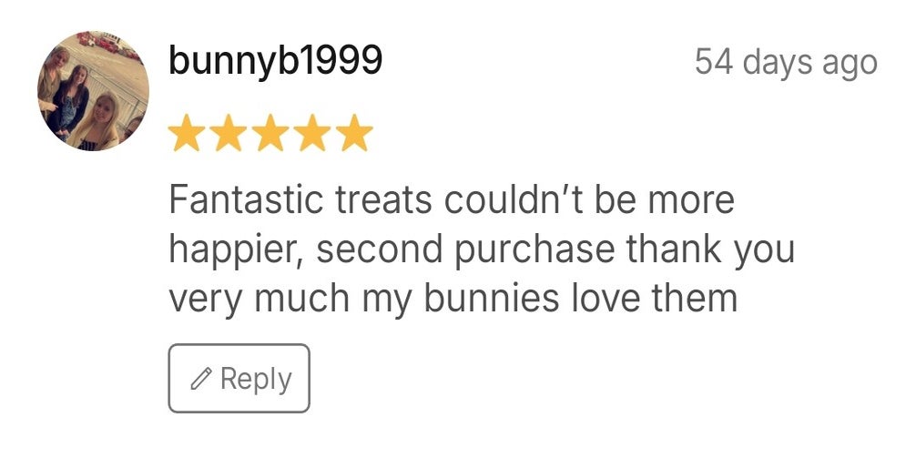 Hi, this is my second order with you - my last order has only just run out so I'm super happy to be buying some more, my bunnies LOVED it!