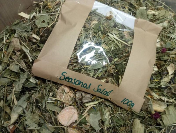 Guinea Gourmet Treats’ Seasonal Salad brings the freshness of the changing seasons straight to your pets’ bowl. Each batch is hand-selected to reflect what nature offers at its best — a perfectly balanced mix of leaves, herbs, flowers, and grasses that evolve throughout the year.