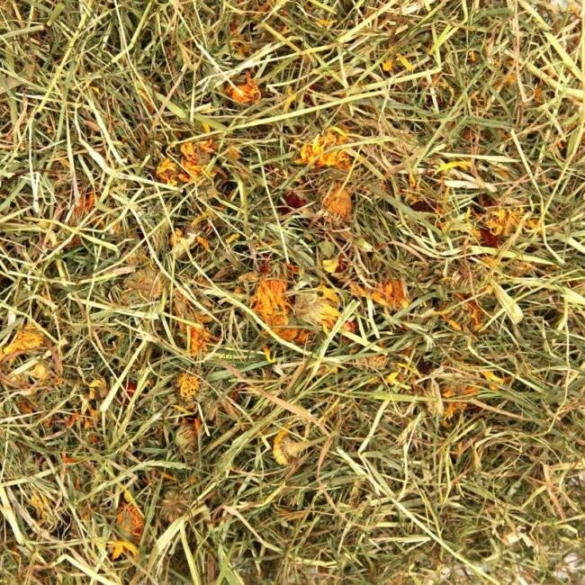 A unique mix of grasses, rich in Timothy with added Dried Pumpkin, Sweet Peppers, Beetroot, Mint and Marigold. The added vegetables and flowers help to stimulate foraging activity and can encourage even the fussiest of eaters.