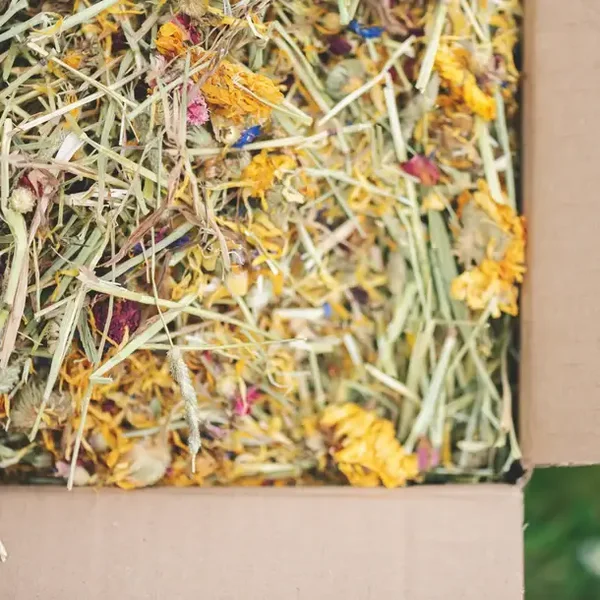 Hand-selected from UK fields, this hay is dried to lock in nutrients and freshness, providing a naturally high-fibre base that keeps teeth trim, digestion healthy, and weight under control. The added flowers bring extra vitamins, minerals, and antioxidants – plus irresistible scent and flavour to encourage even the fussiest of eaters.