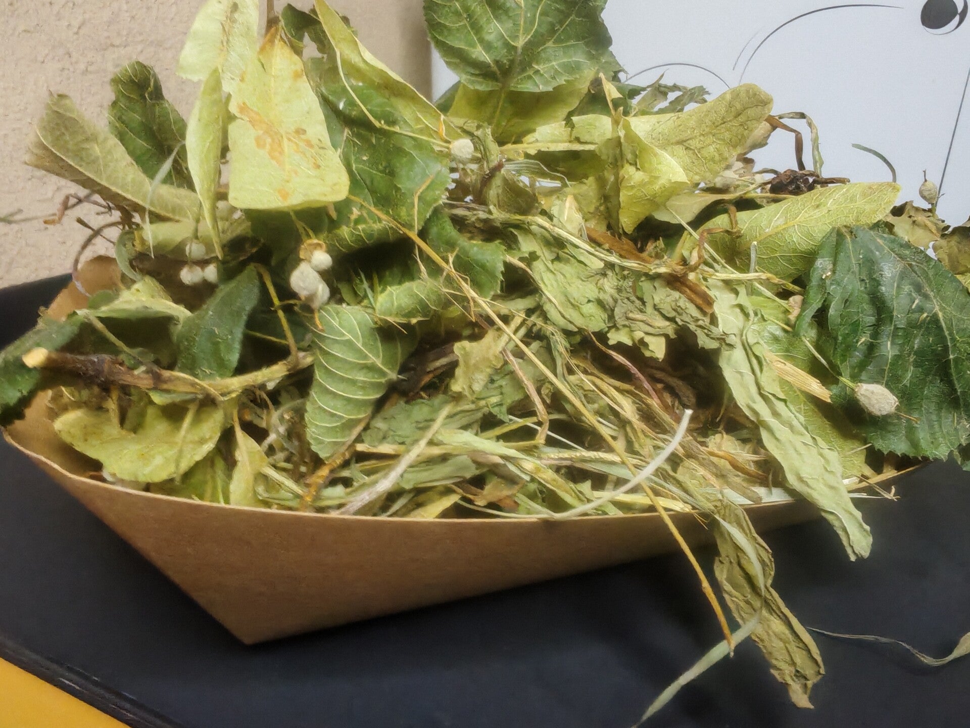 Offer 1–2 loose handfuls daily, scattered like fallen leaves over hay or in a shallow dish.
