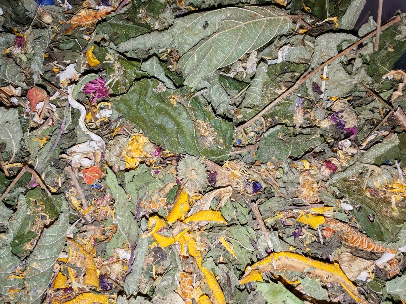 The flower content is intentionally balanced to add interest and support without overpowering the digestive focus of the mix.