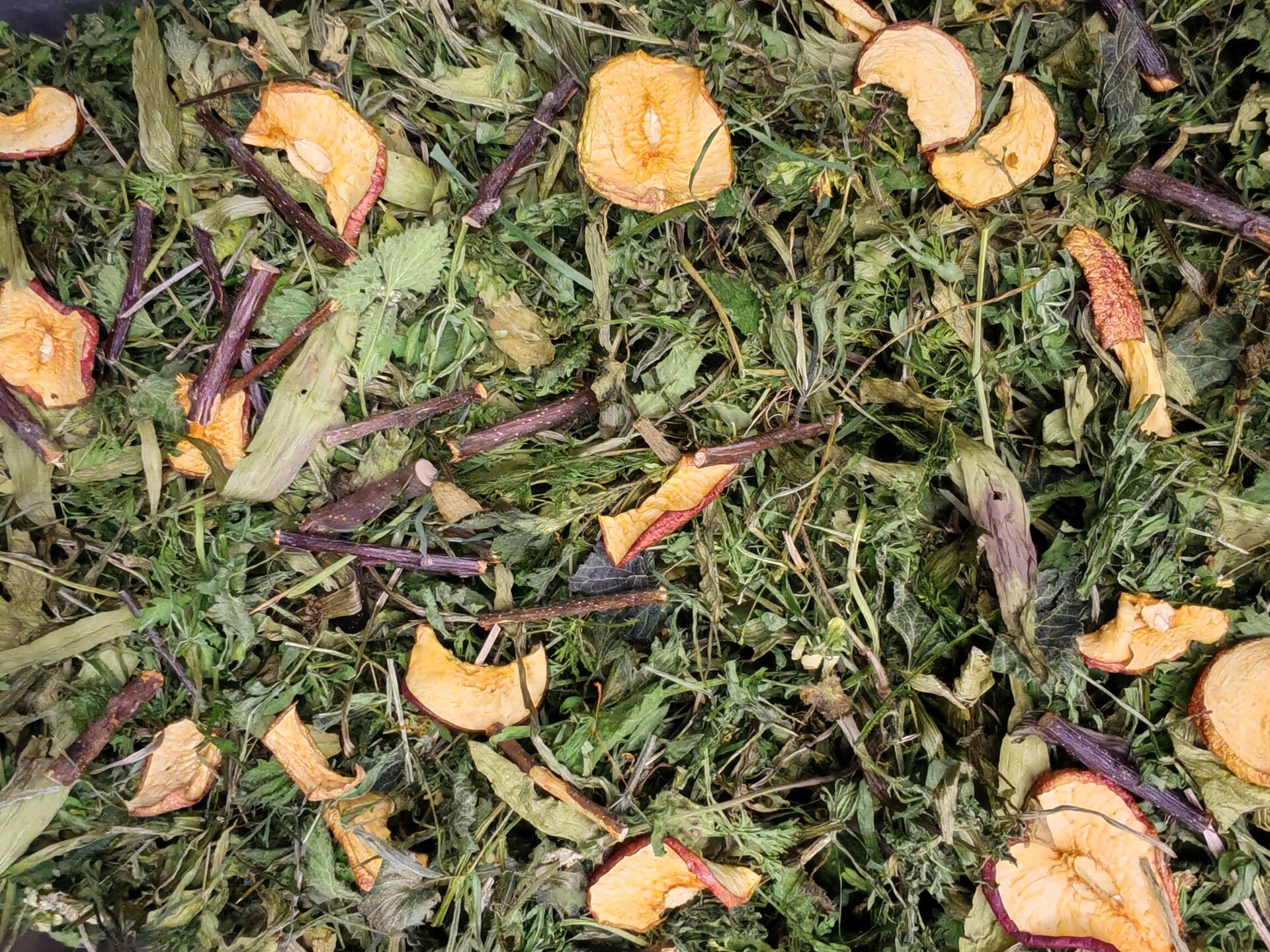 Finished with apple slices and natural apple sticks, this blend also encourages appetite, chewing behaviour, and enrichment.